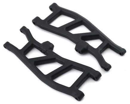 This is an optional set of RPM 4S Kraton and Outcast Rear Suspension Arms, intended for use with ARRMA Kraton and Outcast kits and designed for strength and durability with features to better enhance performance. These A-arms deliver excellent slop elimination by reducing the amount of movement of the A-arm at the hinge pins, providing for better steering response and more consistent camber, caster and toe angle settings. The addition of a second shock mount hole further out on the arm provides a lower profile suspension set-up. This shock position allows the suspension to lay down a little further, dropping the ride height for a lower center of gravity and better cornering stability. All RPM A-arms are molded from their nearly indestructible blend of engineering grade nylons for performance you can rely on when conditions are at their worst. These arms are almost 25% thicker and able to take much more damage than stock.