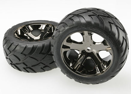 Anaconda® performance street tires feature a specially formulated tire compound providing exceptional wear and sticky traction. Anaconda tires are mounted and pre-glued on futuristic 2.8" All-Star™ black chrome wheels for no-hassle, out-of-the-box bolt-on traction. Molded-foam inserts coupled with the directional tread design provide a balanced feel for the ultimate high-speed on-road experience. Fits 12 mm hex, 2WD electric rear.