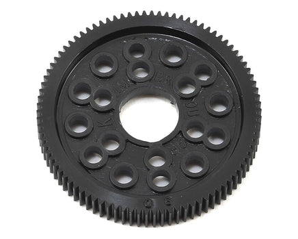Kimbrough spur gears are full width, because a narrow or profiled plastic gear can deform under load, is weaker and less efficient. This can cause drag in the gear train and waste horsepower. The wider a gear is, the more load it can handle. The only time gear engineers narrow gears, is when there is a space limitation. Kimbrough Racing Products gears run quiet because they have the correct tooth shape and don't have to be narrowed. Choose from a variety of tooth count options to allow you to fine tune the torque and top speed of your model.