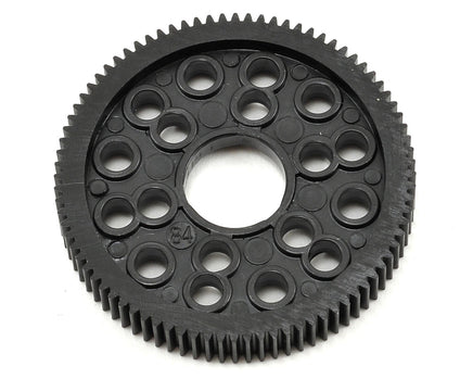 Kimbrough spur gears are full width, because a narrow or profiled plastic gear can deform under load, is weaker and less efficient. This can cause drag in the gear train and waste horsepower. The wider a gear is, the more load it can handle. The only time gear engineers narrow gears, is when there is a space limitation. Kimbrough Racing Products gears run quiet because they have the correct tooth shape and don't have to be narrowed. Choose from a variety of tooth count options to allow you to fine tune the torque and top speed of your model.