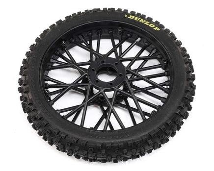 Losi Promoto-MX Dunlop MX53 Front Pre-Mounted Tire. Officially Licensed by Dunlop to Losi with aggressive off-road treads for maximum traction in loose conditions, this optional pre-mounted Dunlop tire is intended for the Promoto-MX 1/4 brushless dirt bike as a quick and easy option!