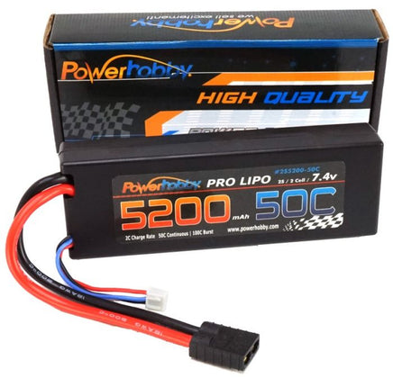 Perfect for 1/10 & 1/8 scale vehicles, boats, planes, drones. When you want a powerful battery pack that you can depend on even when you push it to its limits, this 2S 5200mah 500C LiPo Battery is for you. Powerhobby Power Pro Series lipo batteries offer very high power and very long run time for your RC models. The 100C burst rate enhances your driving experience no matter what type of driving you are into.These batteries packs are made with superior Lithium Polymer raw materials. The advanced stacking technology enables a single cell of capacity to reach 5200mah. Powerhobby Power Pro Batteries are your ideal choice for your RC Applications.