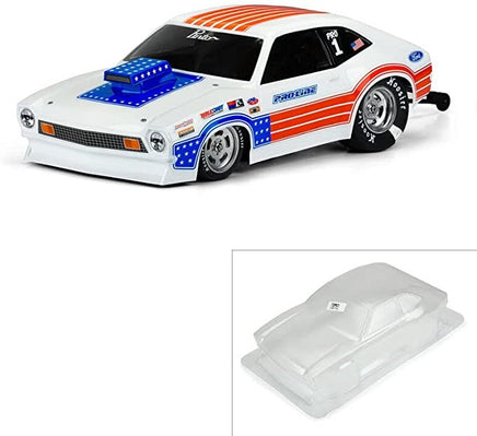 The Pro-Line 1972 Ford Pinto Short Course No Prep Drag Racing Body, is a subcompact bodyshell that is a great option for 11.25 wheelbase buggies. This "Pro Stock" style drag body was designed for chassis such as the Traxxas Bandit, Team Associated SR10 and many other 2WD buggies. Pro-Line has accurately recreated this iconic legend with hexagonal headlight bezels and detailed inset front end. This body comes clear allowing you to give this body a one of a kind paint job. Take to the streets and prepare to blow the doors off the competition!