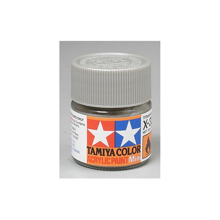 This Tamiya 10ml X-32 Metallic Titan Silver Acrylic Paint is made from water-soluble acrylic resins and is excellent for either brush painting or air-brushing. These paints can be used on styrene resins, Styrofoam, wood, plus all of the common model plastics. The paint covers well, flows smoothly and can be blended easily. Prior to curing, paint can be washed away with plain water.