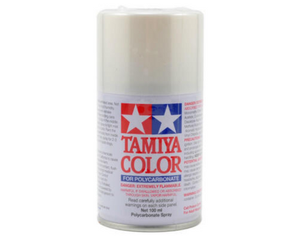 This is a 100ml can of Tamiya PS-57 Pearl White Lexan Spray Paint. These spray paints were developed especially for decorating transparent polycarbonate bodies used in R/C car modeling. Each can contains 100ml (3oz) of paint, which is the appropriate amount for finishing one 1/10 scale model.