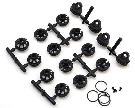 Team Associated B6.1/B6.1D Shock Caps & Spring Cups. These are the replacement shock caps and spring cups included with the B6.1 and B6.1D kits. Package includes spring cups, shock caps, o-rings and shock cap bleeder screws.
