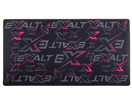 The Team Exalt Pit Mat is a high-quality addition to any driver's pit setup, designed to provide both functionality and style. Measuring 24x48 inches and made from a soft three-millimeter thick material, it offers ample space and comfort for wrenching. The smooth cloth surface ensures a comfortable and efficient workspace, while the anti-fray stitched edging enhances durability and aesthetics. Its ultra-thin and lightweight design makes it easy to transport, perfect for drivers on the go. A non-slip eco-friendly rubber base keeps the mat securely in place, while high-definition custom printing adds a professional look to your pit area that proudly showcases Exalt branding.