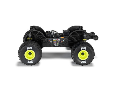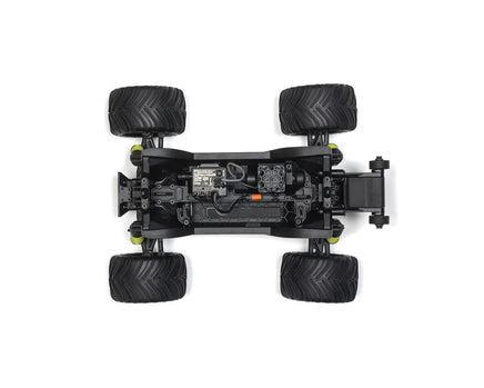 The truck's bold monster truck body snaps on and off with a clipless system, making battery access and maintenance quick and tool-free. High-traction dBoots Chevron Monster Truck tires provide maximum grip on any surface, while color-matched shock springs and a durable composite chassis enhance both performance and style. The impact-absorbing front and rear bumpers protect the body during extreme bashes, keeping the Gorgon Grom ready for nonstop action. Additionally, the battery tray's dual-catch system ensures secure placement while allowing fast swaps, so you spend more time driving and less time tinkering.