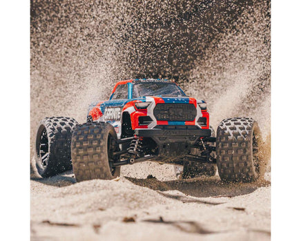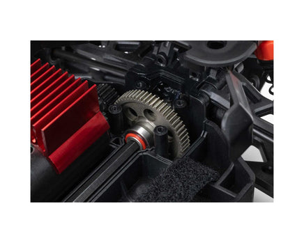 The ARRMA GRANITE GROM 4X4 Monster Truck is built to withstand any challenge you throw its way. Its impact-absorbing front and rear bumpers are ready for intense bashing, flanking a robust composite chassis. Power is efficiently transmitted through a robust 4WD drivetrain with durable metal gears, connecting the MEGA 380 brushed motor to the rugged dBoots FORTRESS monster truck wheels and tires. The Spektrum SX110 steering servo boasts waterproof construction and dependable metal gear strength.