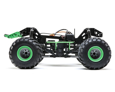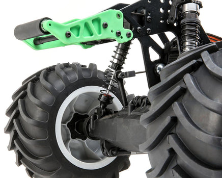 This Monster's features start with the chassis, with a twin vertical plate designed to provide all the performance adjustments needed to tune the truck for any situation. Whether you are a scale driver, a basher or a racer, the chassis is designed to accommodate multiple shock setups keeping you tracking straight on any terrain. Updated multi-piece axle housings surround the 1/8th scale drivetrain. Additionally, the easy access center transmission comes stock with a center differential and allows for quick changes with the optional spool for that wheel standing action. For the true Monster truck experience, the axles also allow for optional 4-wheel steering and an adjustable servo saver to keep the wheels pointed in the right direction. A composite flip top cage adds scale realism and protection while giving easy access the battery and electronics. The LMT Monster Truck has entered the solid axle, and is a great RTR option when you want to crush your competition.