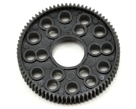 Kimbrough spur gears are full width, because a narrow or profiled plastic gear can deform under load, is weaker and less efficient. This can cause drag in the gear train and waste horsepower. The wider a gear is, the more load it can handle. The only time gear engineers narrow gears, is when there is a space limitation. Kimbrough Racing Products gears run quiet because they have the correct tooth shape and don't have to be narrowed. Choose from a variety of tooth count options to allow you to fine tune the torque and top speed of your model.