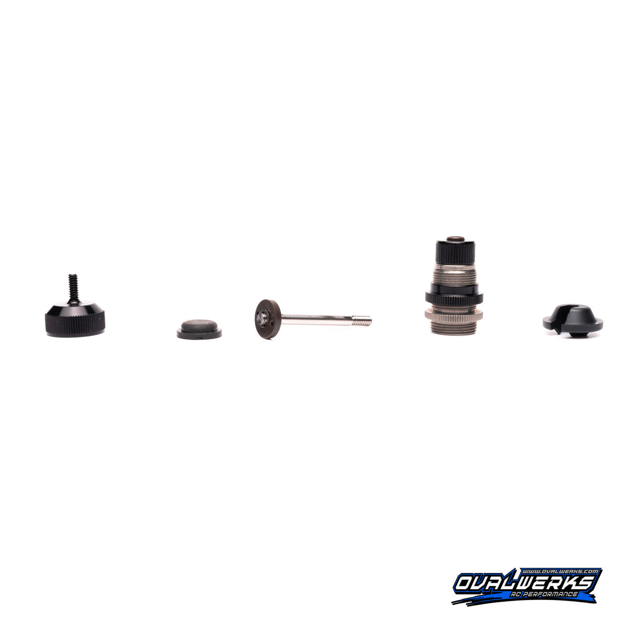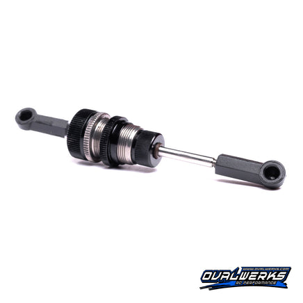 Center shock for Ovalwerks cars with precision machined Delrin AF piston and 3mm titanium shaft. Includes the new machined shaft bushings.