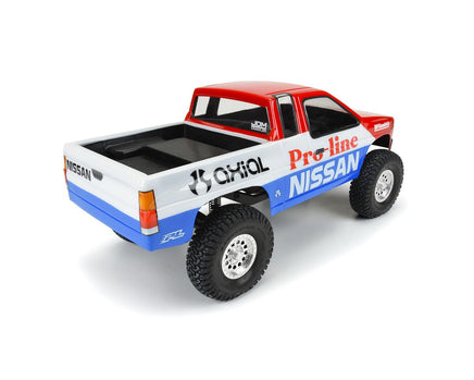 Pro-Line 1987 Nissan "Hardbody" D21 12.3" Rock Crawler Body. The Nissan Hardbody got its name for its tough frame and squared-off looks, which Pro-Line has now faithfully recreated in 1:10 scale. It features an extended "king" cab, a realistic depth bed, and includes optional headlight and taillight buckets for added scale realism. This body is made from high-quality polycarbonate in the USA and is perfect on any 12.3" Crawler such as the SCX10-II or SCX10-III. Give your crawler a unique JDM style with this realistic 1987 Nissan D21 body.