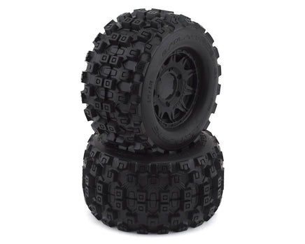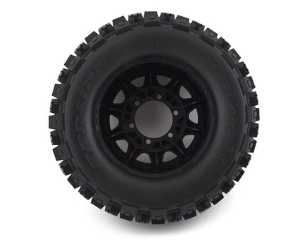 This is a pair of pre-mounted Badlands MX28 2.8” Tires on Raid Removable Hex Wheels. Pro-Line Badlands tires are known for having sweet Motocross inspired tread and the Badlands MX28 tires kick that up a notch with a Bigger and Bolder knobby tread that matches modern MX tire design.