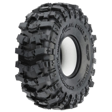 This is a set of Pro-Line Mickey Thompson Baja Pro X 2.2" Rock Crawler Tires. Being the first licensed Mickey Thompson tires from Pro-Line these tires do not disappoint. With an aggressive symmetrical tread pattern and scale features like Tread Biter cleats for added traction, Mud Scoops for added cleaning power or the Massive Sidebiters giving the ability to tackle tougher terrain than ever before. Being an aggressive tread design vehicles like the Ryft, Bomber or Wraith Spawn can see a big advantage in performance and looks!
