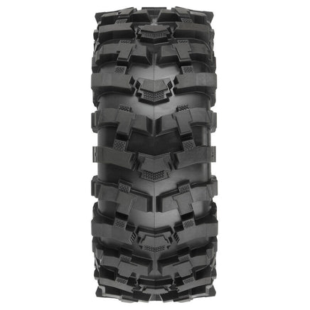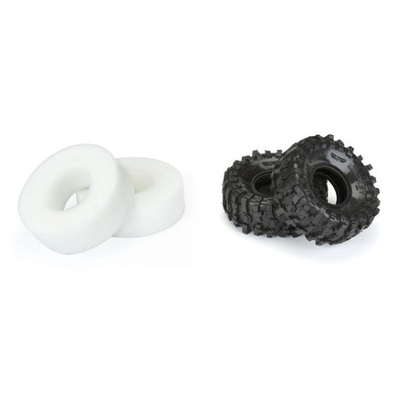 Pro-Line Mickey Thompson Baja Pro X 1.9" Rock Crawler Tires. These optional tires are scaled-down versions of the full-sized Mickey Thompson Baja Pro X. At a massive 4.85" tall x 2" wide, this is one of the largest 1.9" tires Pro-Line has ever made! Molded in your choice of G8 or Predator compounds, all the details of this gnarly tire are captured in perfect 1/10 scale detail: from the Tread Biter cleats for the added traction to the Mud Scoops for added cleaning power, to the Massive Sidebiters and angled shoulder scallops for ultimate side grip. Symmetric directional tread pattern provides excellent traction and cleaning power as well. Package includes two tires with foam inserts.