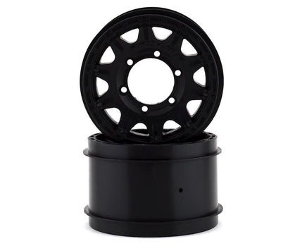 The Pro-Line Raid 2.8" Wheel with Removable Hex allows you to easily change the offset of your wheel to fit different applications by simply changing out the hex! You can go from the included 12mm narrow offset (2wd Stampede®/Rustler® Rear) to the included 12mm wide offset hexes (2wd Stampede®/Rustler® Front and 4x4 Stampede®/Rustler® Front and Rear) quickly and easily. Also imagine being able to replace a damaged wheel hex without needing to replace your glued tires (PRO6335-00 Replacement Hexes) or even upgrading your wheels to 17mm wheel hexes (PRO6336-00 Sold Separately) for extreme use! These Raid 2.8” wheels accomplish all of this and more by using Pro-Line’s unique 6x30 interlocking hex design that is secured to the wheel by 6 M3 screws that are spaced 30mm across. The built-in adjustability and ease of use make this a must-have wheel for bashers everywhere!