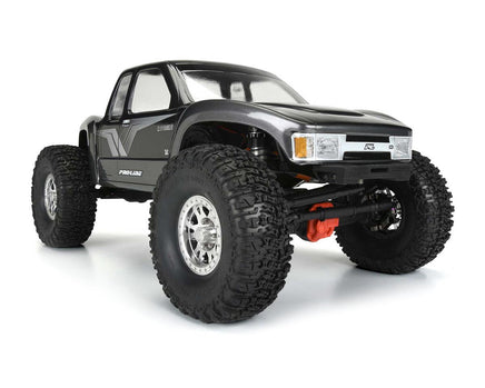 The Cliffhanger features a pinched front end and a dove-tailed rear end for maximum tire clearance while still maintaining a true-to-scale appearance. The Cliffhanger is molded from a single piece of crystal-clear polycarbonate to save on weight and has a molded-in drop-down bed to make room for your favorite scale accessories. Everything on the Cliffhanger body has been optimized for maximum crawling performance while still complying with the spirit of competition crawling rules.