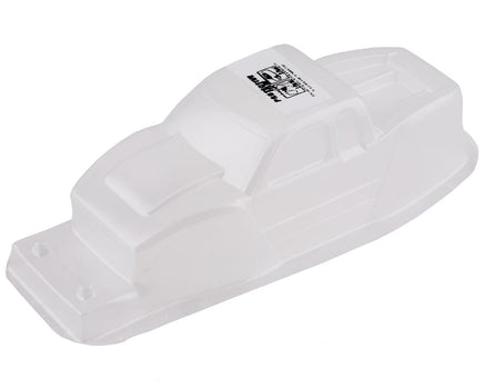 The Pro-Line Axial SCX24 Cliffhanger Body features a pinched front end, with a dove-tailed rear end to create maximum tire clearance while still maintaining a true-to-scale high performance rock crawler appearance. The Cliffhanger is made from a single piece of crystal-clear polycarbonate to save on weight and has a molded-in drop-down bed to add your favorite tiny scale accessories. This body also includes optional headlight buckets for added scale appearance. Plus, unlike other SCX24 body options, the design of the SCX24 Cliffhanger allows use on all SCX24 models, regardless of wheelbase!