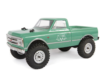 he Axial SCX24 1967 Chevrolet C10 1/24 4WD RTR Scale Mini Crawler with 2.4GHz radio is hitting the scene ready for RC adventures. Despite being scaled down to a compact size, this mini crawler is ready for some big adventures. Get bored at work? Crawl this guy across your desk, we wont tell HR. That laundry you forgot to put away is now a mountain for your SCX24 to climb and conquer. Take this car outside, where its water-resistant electronics are safe from the elements, and make your own course from whatever sticks and rocks are in your yard or local park. The possibilities are endless with this mighty mini.