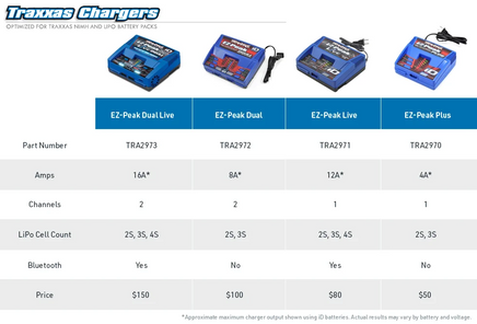 This is the Traxxas EZ-Peak Plus Multi-Chemistry Battery Charger, with iD Auto Battery Identification. The Traxxas iD battery system is the easiest and safest way to charge your Traxxas batteries. The EZ-Peak Plus recognizes Traxxas iD batteries and in an instant automatically configures and optimizes the charger settings. There's no need to be a battery expert or learn how to navigate complex menus. Just plug in a Traxxas iD battery and the EZ-Peak Plus does all the work for you. The integrated balance connector on Traxxas LiPo iD batteries eliminates fragile balance wires and connectors, along with the need for external balance boards. At the press of a button, the EZ-Peak Plus' Storage Mode protects your LiPo battery investment by safely preparing the batteries for extended storage. 4-amp fast charging and advanced high-resolution peak detection deliver a perfect charge every time. The EZ-Peak Plus is backed by the Traxxas Lifetime Electronics Manufacturer Warranty for years of reliable service.