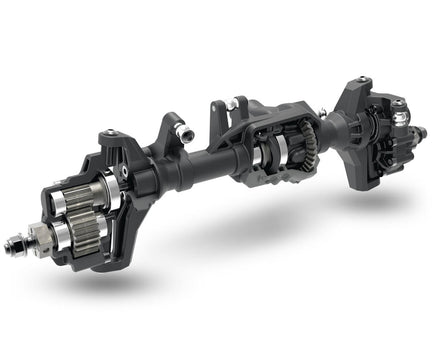 The full-time shaft-driven 4-wheel-drive system is designed for performance in off-road conditions. It features large six-millimeter stub axles, steel front CV driveshafts, and hardened steel rear axle shafts, ensuring strength and reliability under any terrain. The system includes remote-locking steel gear differentials (T-Lock) with cable actuation, allowing for traction adjustments. The steel-geared transfer case enhances power distribution, while portal axles provide multiple benefits, including increased ground clearance, eliminating torque twist for better stability, and optimizing axle geometry that reduces strain on the driveshafts. With steel gears throughout, the drivetrain is engineered for durability, ensuring long-lasting performance in extreme terrains.