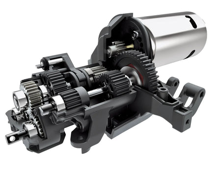 The two-speed high/low range transmission with remote shifting allows for seamless transitions between high speed and low torque settings. Its design incorporates dual horizontal shafts for balanced power transfer and durability. A twin-friction plate slipper clutch is integrated to protect the drivetrain by preventing excessive wear to the spur gear. Additionally, the transmission is designed for easy removal, simplifying maintenance. This combination of features enhances the vehicle’s versatility, durability, and overall performance in demanding off-road conditions.