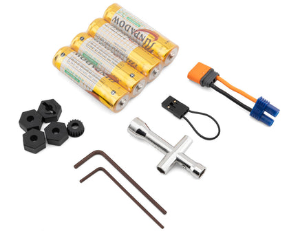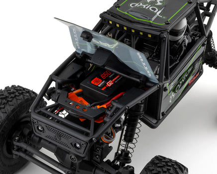 The UTB18 is similar in design to the popular 1/10 scale Axial Capra 1.9 4WD Unlimited Trail Buggy and has a scaled-down Capra tube chassis. Like the larger trail buggy, the UTB18 also has portal axles to provide extra ground clearance for maneuvering. Add in its axle-mounted, low profile 1/10 scale servo for quick, strong steering and the durable 4-link suspension system, and the UTB18 is ready to prove that size has nothing to do with crawling performance. Plus, this mightiest of mini trail buggies is updated with the latest Spektrum electronics. In addition to a Spektrum SLT2 2.4GHz radio, the UTB18 comes with a Spektrum 2-in-1 ESC/receiver unit, Spektrum 2S Smart G2 LiPo battery and Spektrum Smart USB LiPo battery charger!