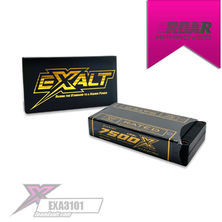 Looking for an edge in your next race? Look no further than the 7500 X-Rated High Performance Lipo battery! Featuring the newest chemistry providing durability while providing low resistance, and a flatter discharge curve.Team Exalt's X-Rated Lipo batteries Feature Silicon Graphene technology, which stabilizes the cells and increases their cycle life & efficiency.