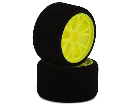 eXcelerate 1/12th Foam Front Tires. Made from high quality Japanese foam with super lightweight and durable nylon wheels, these eXcelerate foam tires are an excellent choice for 1/12 on-road racers wanting to get consistent fast laps and supreme results!