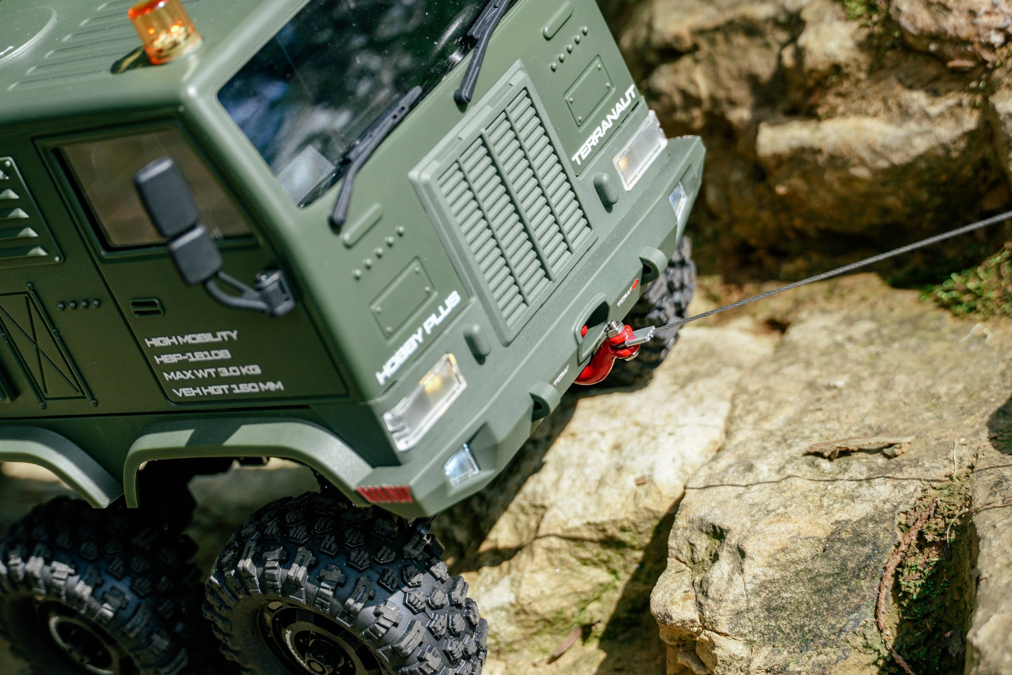 Integrated remote-controlled LED lighting and a fully operational recovery winch add realism and functionality, making this more than just an RC—it’s a mission-ready vehicle.