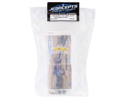 The JConcepts Axial SCX24 1993 Ford F-150 Mini Crawler Body is the ultimate option for "Blue Oval" fans. The super scale 1/24 body features the hard body-lines that give 90's era F-150s the built tough personality. The lowered bed allows for body mount positioning, as well as the ability to add an assortment of scale aftermarket accessories to make the truck unique. A small, built in front bumper can either be tucked behind the single tube bumper found on the Axial or simply positioned without the stock bumper for a more realistic street truck look. The body comes clear and includes an authentic decal sheet and easy to use window mask for the detailed hobbyist.