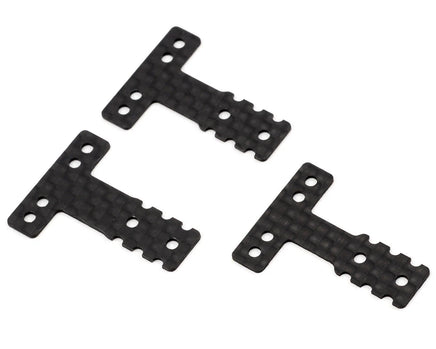 This is an optional Kyosho MM/LM-Type Carbon Fiber Rear Suspension Plate Set, and is intended for use with the Kyosho Mini-Z MR-03 MM and LM-Type chassis. This suspension plate set will increase the rigidity in the rear of the chassis and is ideal for high traction surfaces. Includes three different width plates, each with different levels of rigidity and will allow you to tune the flex of the chassis to suit a variety of track conditions.