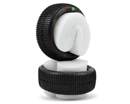 This is a set of two Pro-Line Hole Shot Front Buggy Tires. 2WD Buggy racing has made a huge comeback and if you race your buggy outdoors, then you need to try Pro-Line’s Hole Shot 2WD Front Tires. Unlike the typical ribbed front tire, the Hole Shot 2WD fronts are super smooth while still maintaining all the steering you need. Ribbed fronts are known for doing the catch-and-grab at the wrong time leading to inconsistent handling. Pro-Line’s Hole Shot 2wd Front tires set the standard in steering for every outdoor track condition, from super loose to hard-packed.