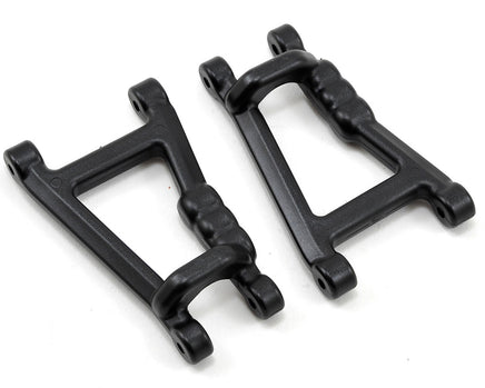 This is an optional RPM Traxxas Rear A-Arm Set, and is intended for use with the Traxxas Bandit 1/10 2wd Buggy. RPM Rear A-arms were developed to strengthen the rear end of these already tough 1/10th scale buggies. The A-arms incorporate stock suspension geometry yet are vastly stronger and much more aesthetically pleasing than the stock A-arms. Additionally, RPM has beefed up the hinge pin bosses by roughly 20% while reducing hinge pin slop for camber and rear toe settings that don’t move! All this increased strength and the A-arms are roughly 8% lighter than stock!