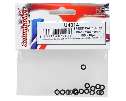 This is a pack of sixteen replacement Schumacher SPEED PACK Aluminum Black Washers.