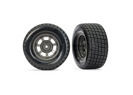 Tires & wheels, assembled, glued (dirt oval, graphite gray wheels, Hoosier® tires, foam inserts) (2) (2WD front only)