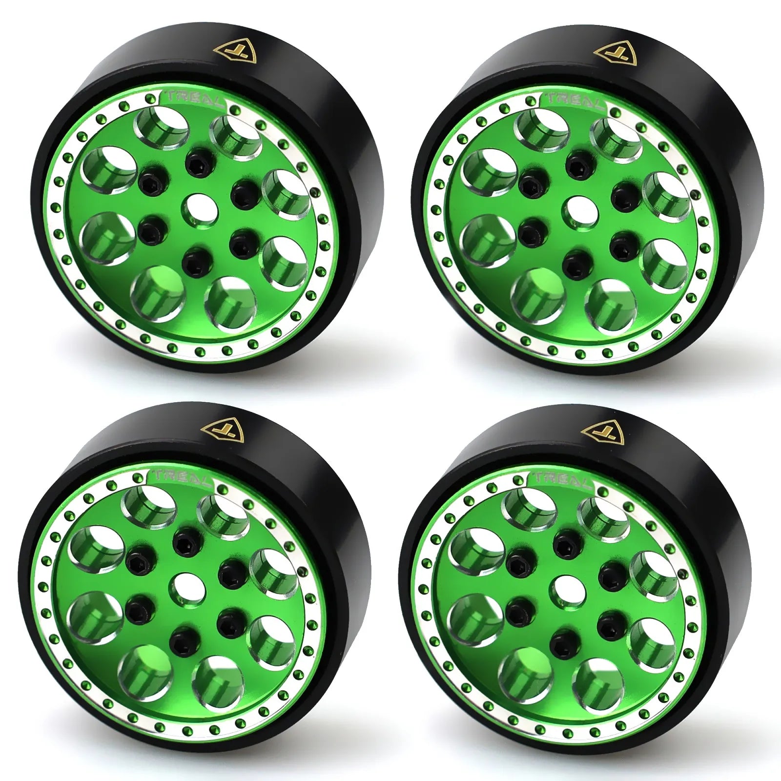 Treal 1.0 Beadlock Wheels(4P-Set) for Axial SCX24 1/24 Crawler Brass Ring Weighted 22g - Green