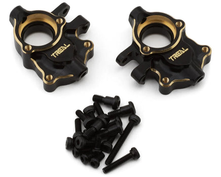 These Treal Hobby Redcat Ascent-18 Brass Front Steering Knuckles are a robust upgrade designed for the Redcat Ascent-18 1/18 4WD Rock Crawler, focused on enhancing performance and durability. Each knuckle weighs twenty-seven grams, adding a total of fifty-four grams of weight to the front of your crawler. This added weight improves steering response, providing precise control and better maneuverability when tackling tight corners and challenging obstacles. Constructed from high-quality brass, these steering knuckles are built for exceptional durability, ensuring long-lasting reliability in demanding off-road conditions. Their seamless integration with your crawler makes them a practical and effective upgrade for improving both handling and overall performance.