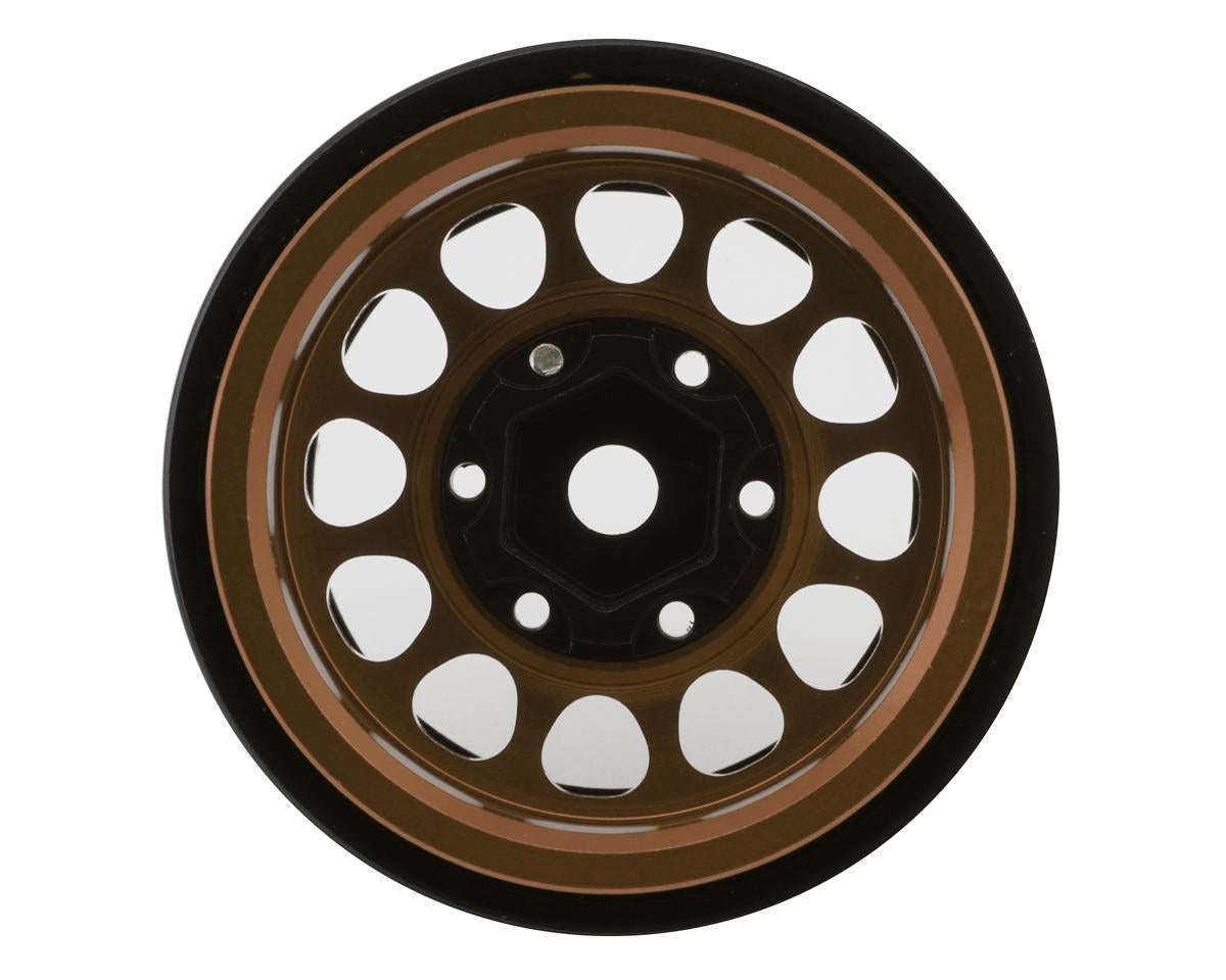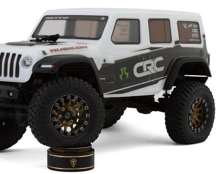 Treal Hobby Type I 1.0" Classic 12-Spoke Beadlock Wheels. Constructed from top quality CNC machined aluminum with interchangeable brass center rings, These optional beadlock rims are intended for 1/24 and 1/18 Scale rock crawlers to enhance scale realism, style, durability and performance! Features a scale 12-Spoke rim with an easy to mount beadlock design and removable hex hub, to use different hub types and tune your offset to your liking and driving style! In addition, multiple colors are available to choose from allowing you to customize the look and style of your rig all while adding 108.8g of total unsprung weight down low to improve the lower center of gravity for enhanced and more stable crawling performance!