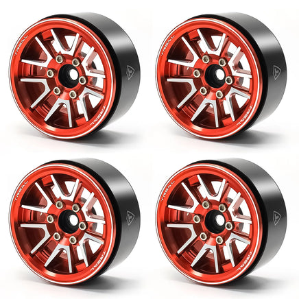 Treal 1.9" Beadlock Wheel Rims (4pcs) for 1:10 RC Crawler Axial SCX10 III SCX10 II TRX-4 RC Car -Type L - Red